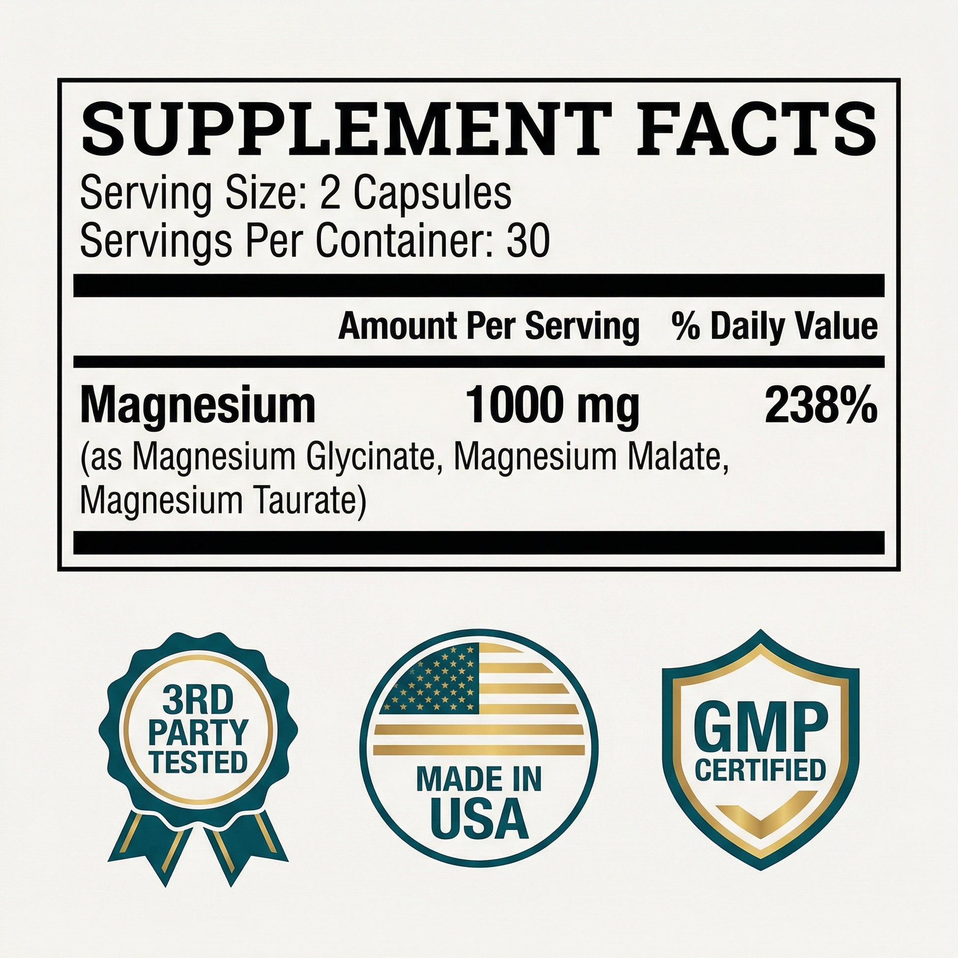 Regular Magnesium = Wrong form, wrong absorption. Magnesium oxide — the kind in most cheap supplements — has roughly 4% bioavailability. That means 96% never reaches your bloodstream. It just passes straight through.